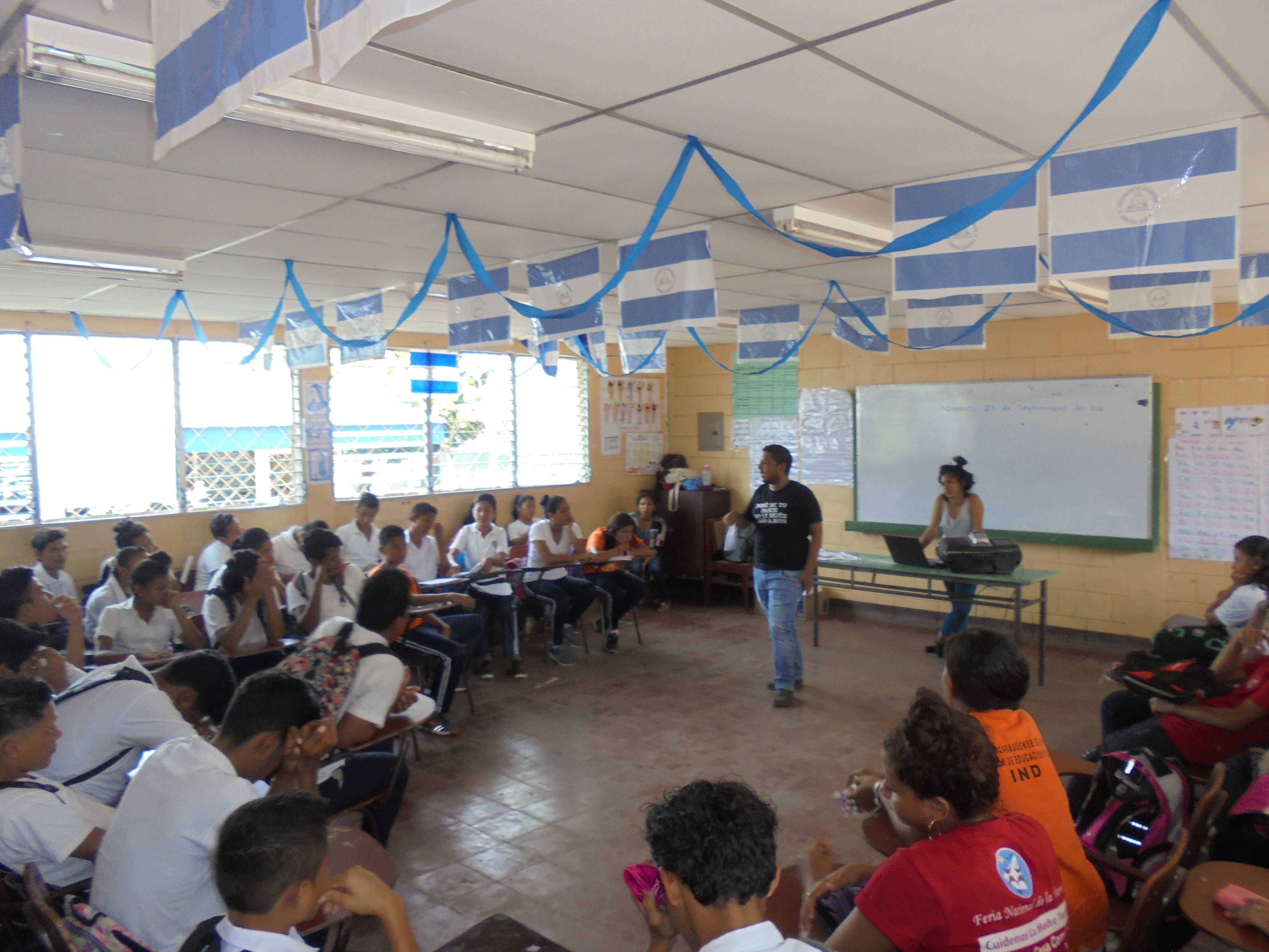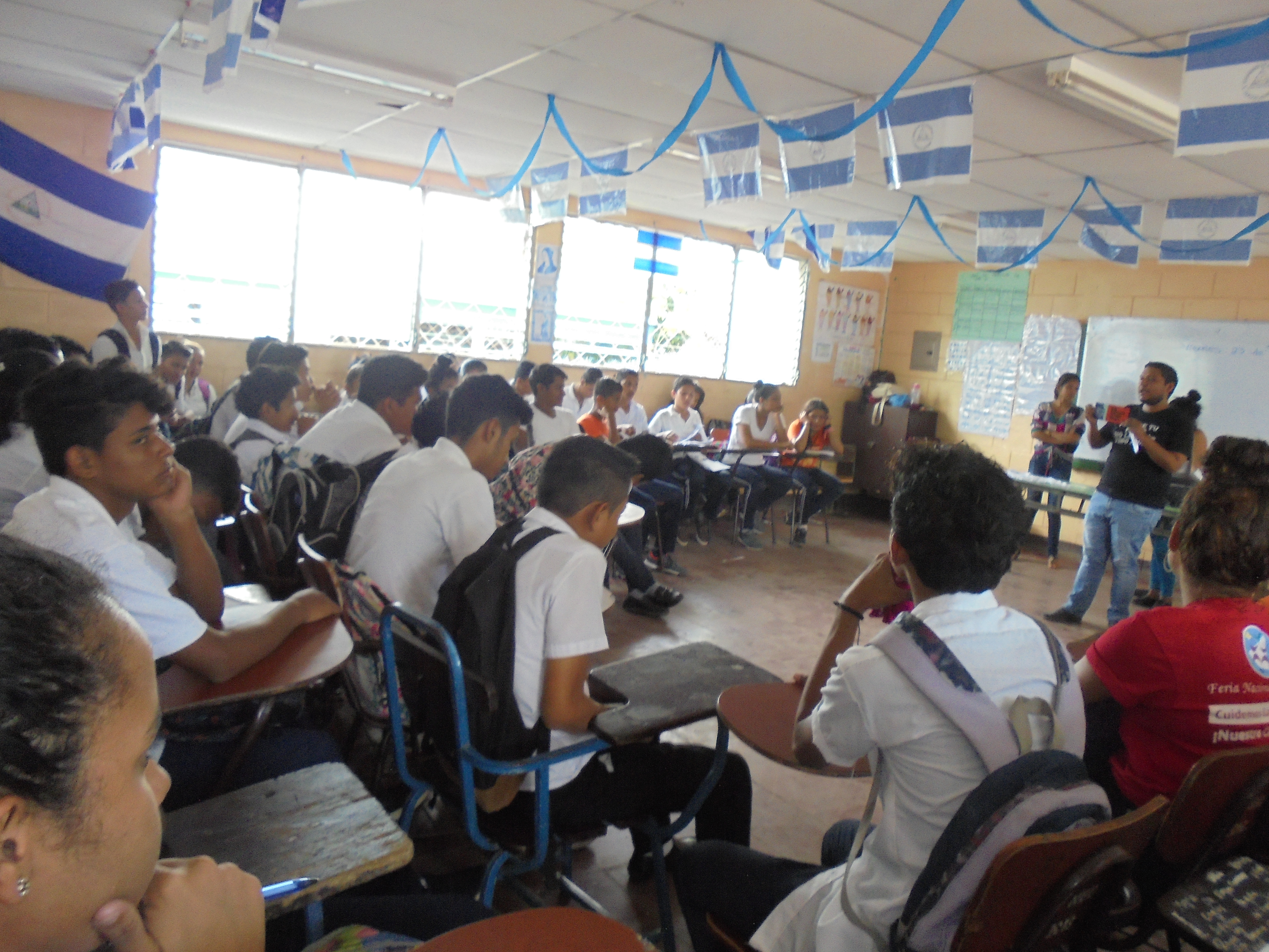 El pasado 23 de septiembre presentamos la campaña de comunicación “Ser violento te hace menos” con 65 estudiantes del Colegio Clementina Cabezas ubicado en el barrio San Judas de Managua, actividad que fue posible gracias a la colaboración de jóvenes líderes del Centro de Comunicación y Educación Popular Cantera.