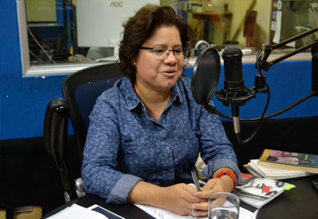 Nos acompañó en cabina Martha Cecilia Ruíz, fminista, poeta, narradora, periodista, fundadora del grupo Tres Veces Tres: Tres Mujeres, Tres poetas, Tres periodistas, integrante de la Junta Directiva de Asociación Nicaragüense de Escritoras (ANIDE) y conductora del programa cultural radial «El País Azul».