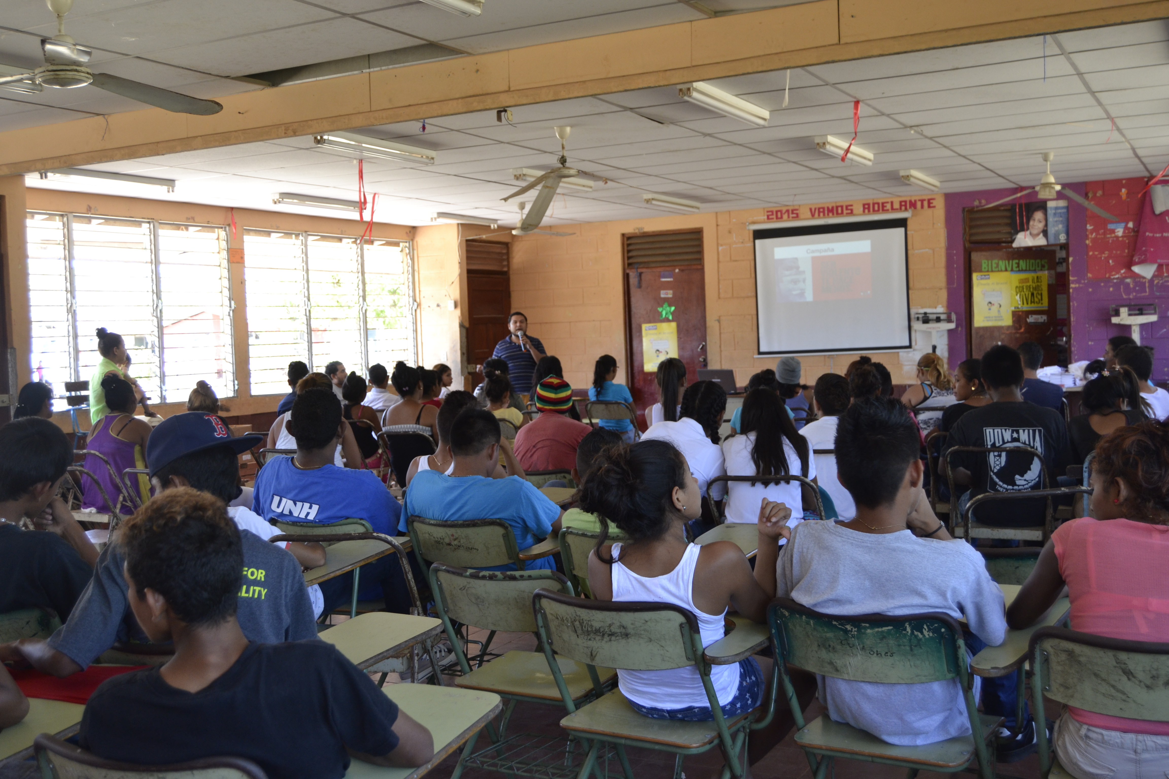 Con un público de setenta mujeres y hombres jóvenes presentamos el 7 de febrero la campaña de comunicación “Ser violento te hace menos” en la Casa Comunal Nueva Jerusalén, del municipio de Villanueva, Chinandega, actividad que fue convocada por la Red de Jóvenes Emprendedores Del Cambio Villanueva.